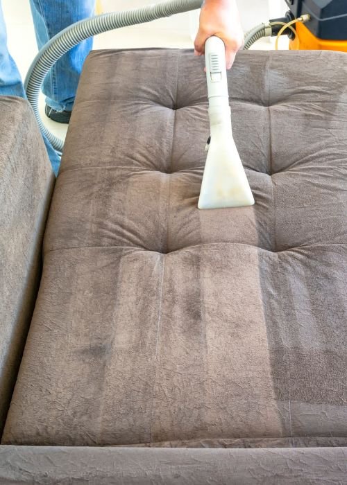 Met onze sproei-/zuigmethode wordt water met reinigingsmiddel diep in de stof gespoten en meteen weer opgezogen. Hiermee verwijderen we vet, stof, etensresten en micro-organismen tot in de kern. Voor delicate stoffen gebruiken we zachtere borstels om beschadiging te voorkomen.